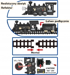 La locomotive avec projecteur allumé et des sons authentiques de train à vapeur crée une atmosphère immersive et plonge les enfants dans le jeu.