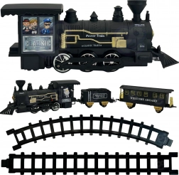 Locomotive avec lumière et sons, wagon à charbon, voiture voyageurs, 8× rail courbe, 4× rail droit