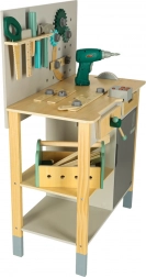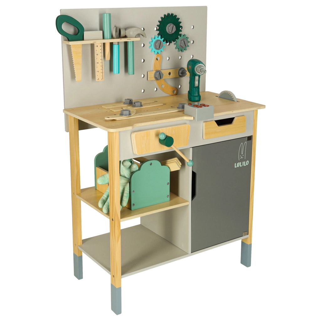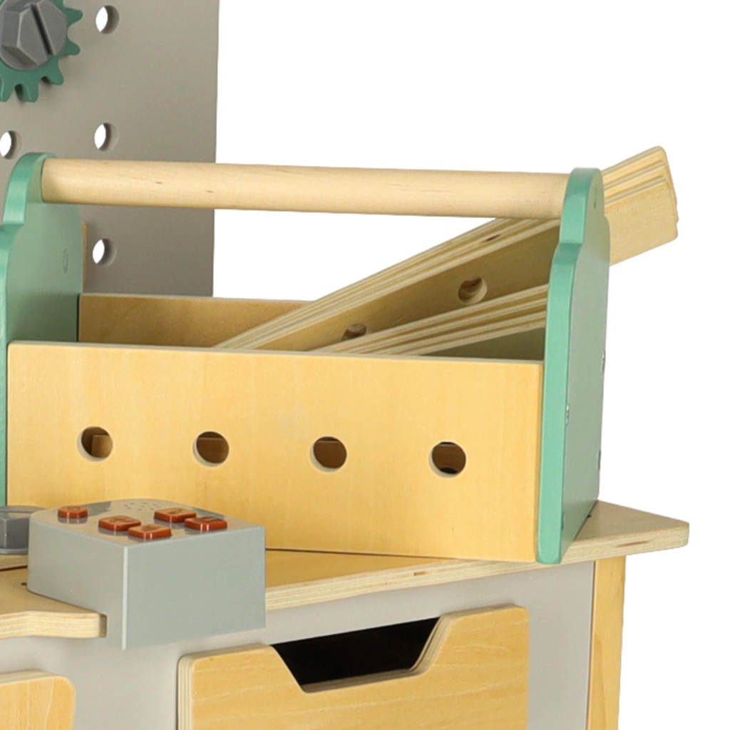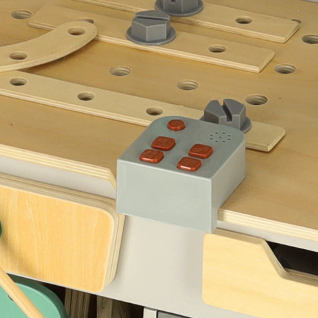 Valeur éducative : Utilisation appropriée pour un environnement domestique ou scolaire, où un large choix d'outils permet des scénarios de jeu infinis. Inclus, entre autres, une table, une scie, un tournevis, un marteau et bien plus encore, y compris une télécommande avec effets sonores.