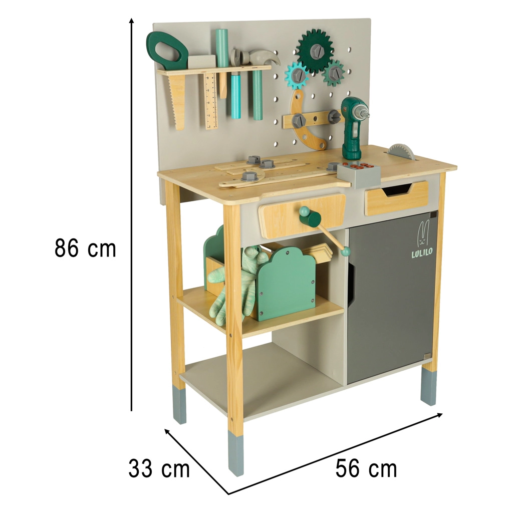 Ensemble d'outils pour enfants comprend des mini-outils pour exercer la motricité fine et un environnement sécurisé où l'enfant peut acquérir les compétences nécessaires pour travailler avec des outils. Avec cet ensemble, l'enfant apprendra à distinguer les outils et comprendra les règles pour les utiliser.