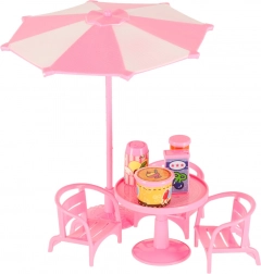 La table, les chaises et le parasol créent un espace cosy pour les invités. Idéal pour servir glaces et boissons.