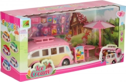 Stimulez l’imagination des enfants avec un camping-car glacier stylé doté d’un mini café. Le set de 30 pièces propose des portes et un toit ouvrants, un auvent coulissant et de nombreux accessoires pour jouer au marchand de glaces. Idéal pour les enfants dès 3 ans.