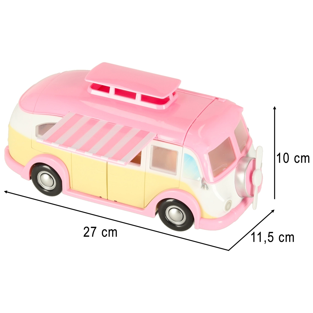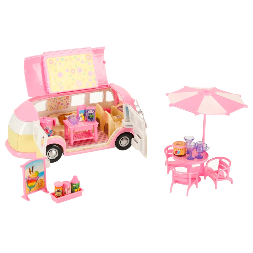 Ce ravissant camping-car glacier aux couleurs rose et crème transforme chaque chambre en petit bistrot itinérant. Les enfants peuvent ouvrir le toit et les portes, déployer l’auvent et servir les clients à la table avec parasol. Les détails réalistes de l’intérieur stimulent l’imagination et promettent de longues heures de jeu.