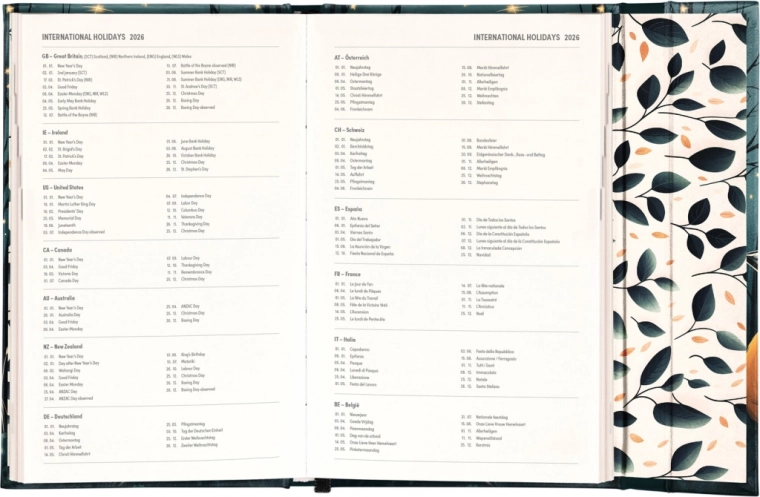 Agenda hebdomadaire en anglais avec fêtes internationales et fermeture magnétique pratique, idéal pour celles et ceux qui veulent garder leurs plans parfaitement sous contrôle.