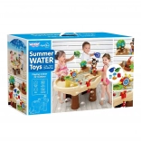 Le set comprend une tour de pirate avec nid, une figurine de pirate, une ancre, des gobelets pour transvaser et des animaux flottants qui favorisent le jeu sensoriel, la coordination œil‑main et la créativité. Le grand espace permet aux enfants de jouer confortablement à plusieurs et la conception simple facilite la vidange de l’eau et l’entretien.