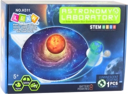 Alimenté par des piles, le kit permet la révolution de la Terre autour du Soleil et l’orbite de la Lune autour de la Terre. Il comprend des modèles d’astres, une galaxie, un mécanisme à engrenages et des accessoires artistiques : pinceaux, peintures, palette et manuel. Les enfants peuvent peindre librement les planètes selon leurs idées, ce qui stimule la créativité et la dextérité.