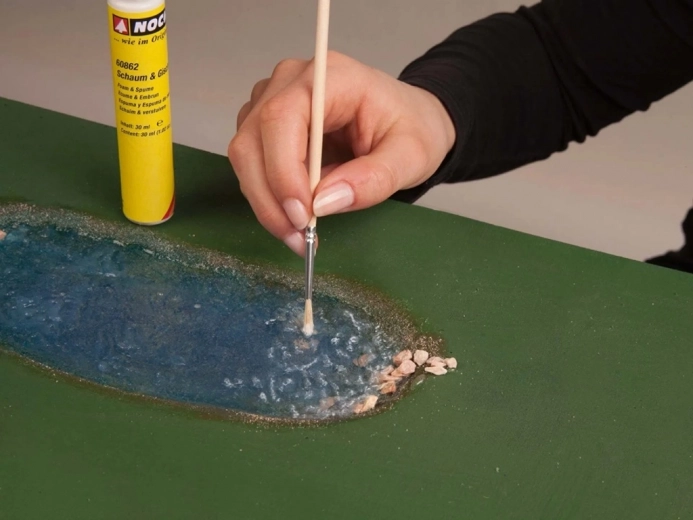 L’Eau de modélisme Noch est conçue pour réaliser facilement des plans d’eau tels que lacs, étangs et ruisseaux peu profonds sans dénivelé. Ce matériau monocomposant ne nécessite aucun mélange : il suffit de le verser directement de la bouteille dans le lit ou le fond préparé.