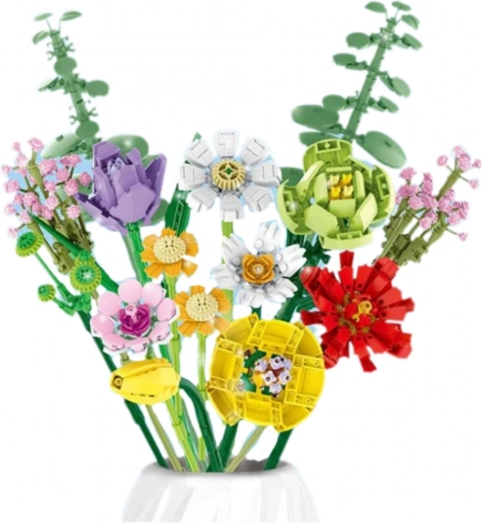 Les pièces plastiques résistantes reproduisent fidèlement les détails des pétales et des tiges. Le bouquet terminé ne nécessite ni arrosage ni entretien, tout en conservant longtemps son aspect esthétique. Idéal comme activité relaxante pour les enfants dès 6 ans et les adultes — le temps de construction moyen est d’environ 1,5 à 2 heures avec une difficulté faible à moyenne.