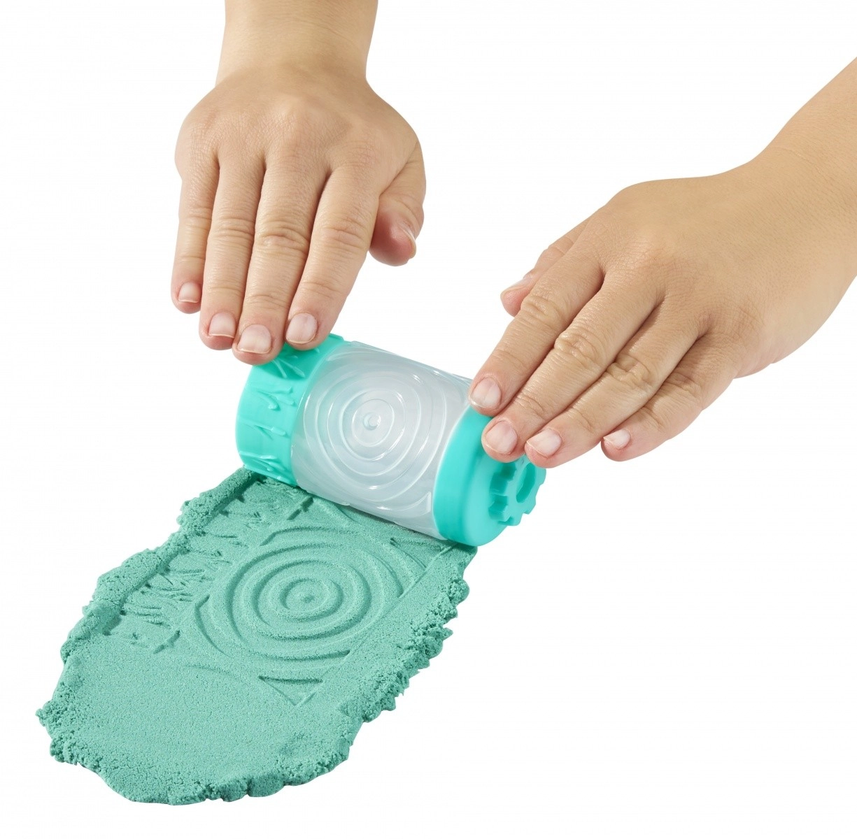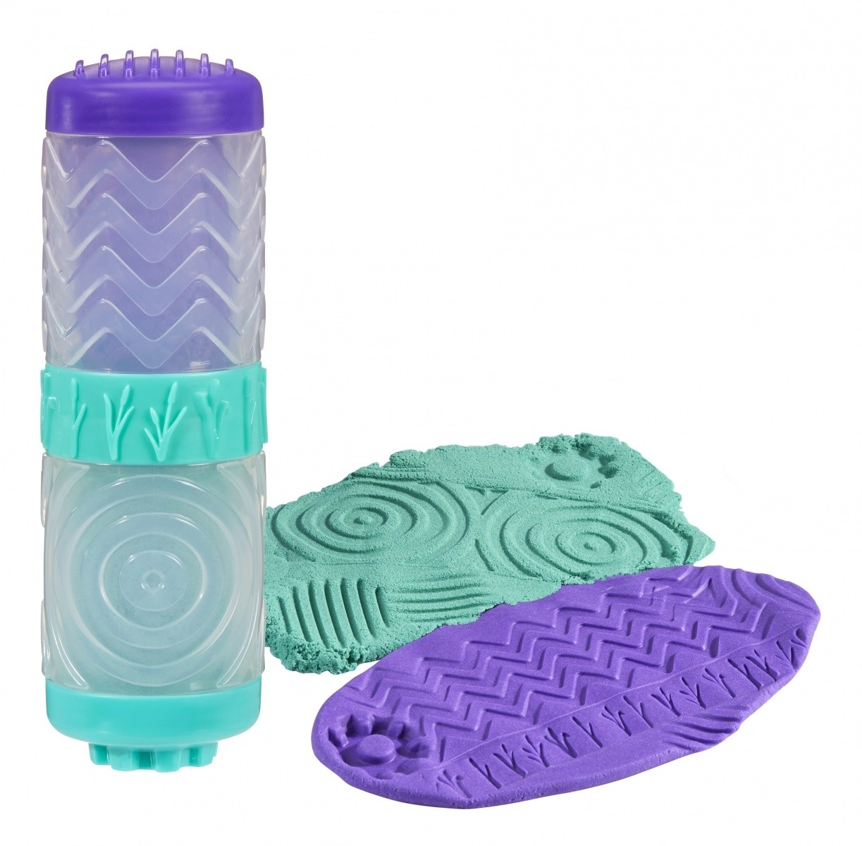 Jouez avec des consistances différentes – pâte souple et malléable et sable texturé – ou mélangez-les pour créer une texture totalement nouvelle. Grâce à l’emballage durable, chaque élément fait aussi partie du jeu : les capuchons tamponnent, le connecteur roule et les tubes transparents stockent le contenu en toute sécurité.