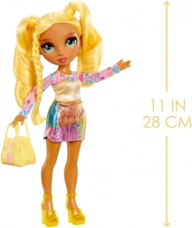 Sunny de RAINBOW HIGH est une muse de mode sûre d’elle qui inspire les enfants à exprimer leur propre individualité. Sa tenue mêle des accents jaune vif et arc-en-ciel – un top audacieux, une jupe intemporelle, des escarpins élégants et un sac assorti. Ses cheveux coiffés en tresses ludiques invitent à la créativité lors du coiffage.