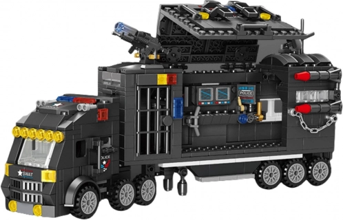 Jeu de construction 8‑en‑1 SWAT avec 826 pièces. Construisez 8 véhicules de police et combinez-les en un robot. Compatible, résistant et idéal pour développer la créativité.