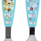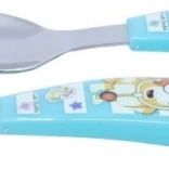 Adorable ensemble de couverts pour enfants avec motif BLUEY, comprenant une cuillère et une fourchette en acier inoxydable de qualité. Grâce aux formes arrondies, l’utilisation est sûre et confortable pour les petites mains, et le décor sur les manches motive les enfants à manger de manière autonome. Sans BPA.