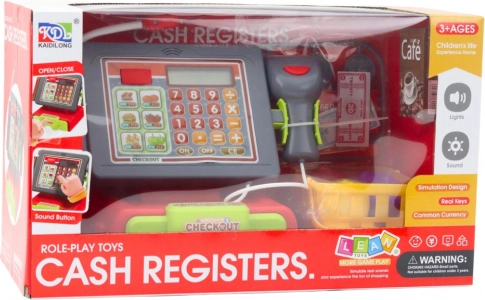 - Imitation du travail d’une caisse, microphone, scanner, clavier numérique, effets lumineux et sonores