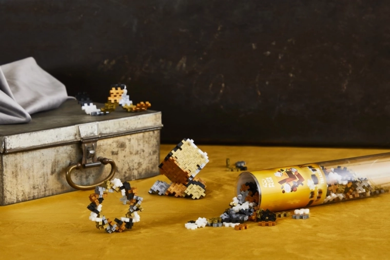Le set Plus-Plus Trésor propose 100 pièces originales en or, argent, cuivre, noir et nacré. La forme unique des éléments permet de construire facilement des mosaïques 2D comme des modèles 3D – des idées simples aux constructions élaborées. Le tube pratique est parfait pour les voyages, l’école maternelle et la maison.