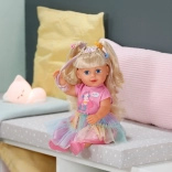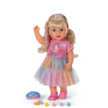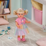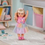 Découvrez la poupée BABY born Carla 43 cm avec de longs cheveux en nylon de qualité, faciles à coiffer. Elle est accompagnée de 7 accessoires de coiffure, possède des articulations mobiles, peut tenir debout toute seule et, grâce à son corps rigide, elle peut aller dans le bain. Son style est complété par un adorable tee-shirt, une jupe en tulle arc-en-ciel et des chaussures roses – parfait pour le jeu créatif et le stylisme capillaire.