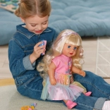 La poupée BABY born Carla offre aux enfants de nombreuses possibilités de jeu créatif. Ses longs cheveux en nylon, doux et soyeux, sont parfaits pour être brossés, attachés en queue-de-cheval ou tressés. Le set de 7 accessoires – brosse, élastiques et barrettes – stimule l’imagination pour un stylisme quotidien.