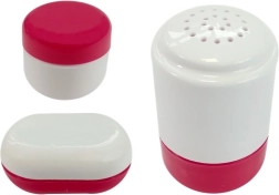 Le set comprend également des accessoires qui élargissent les possibilités de jeu : flacon de poudre, savons liquides, porte-savon, « lait » en boîte et « céréales » en boîte, couverts jouets pour bébé et autocollants pour personnaliser. Le jeu favorise la motricité fine, les jeux de rôle et les compétences sociales.