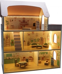 La maison de poupées Lulilo Peonio est une belle demeure à trois étages dans une combinaison rose et menthe, avec impressions d’intérieurs, escalier et balcon. Les petites lumières LED chaudes créent une atmosphère magique pour le jeu du soir et rendent chaque pièce plus chaleureuse. Grâce au riche ensemble de meubles, les enfants aménagent facilement la chambre, le salon, la cuisine et la salle de bain.
