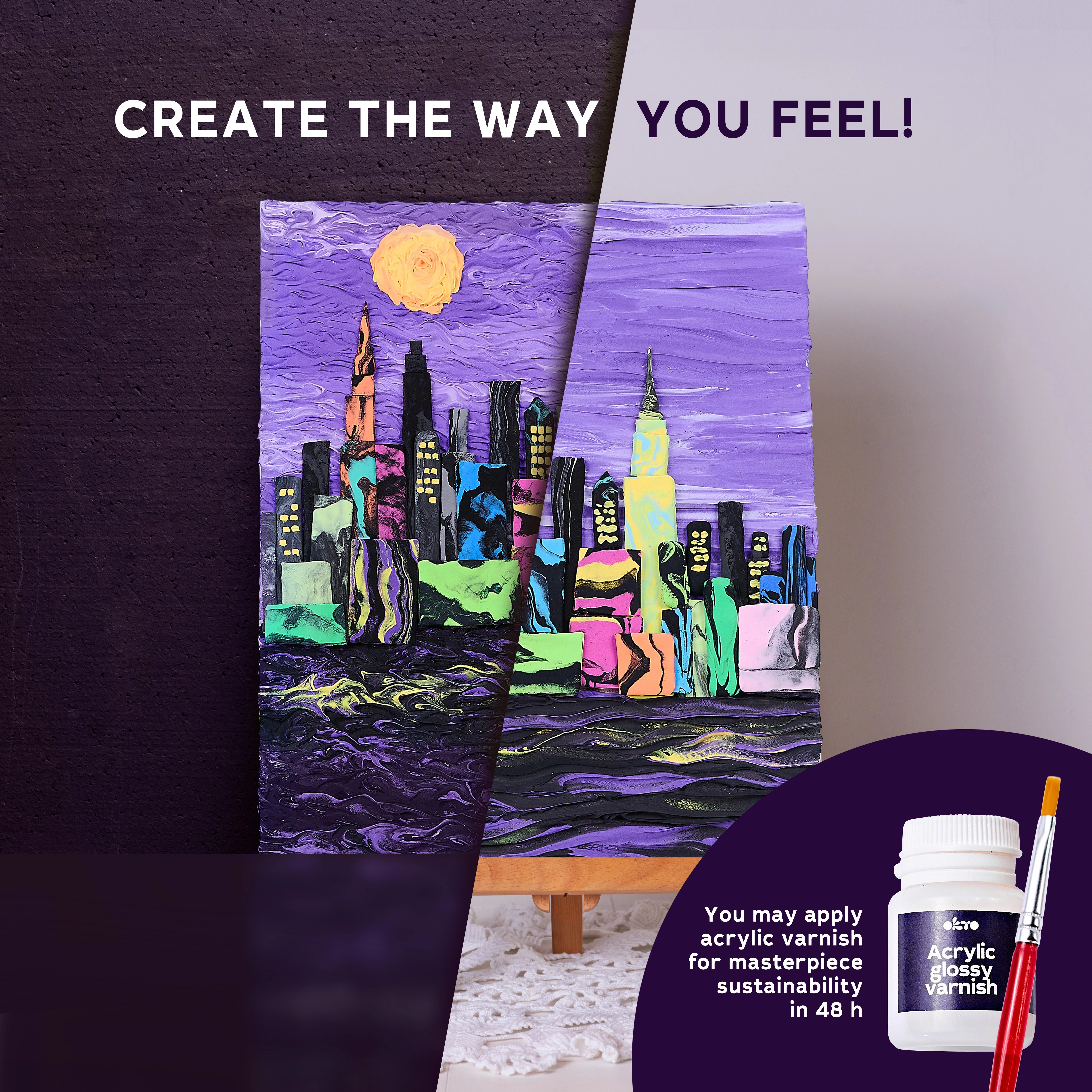 Ce kit artistique OKTO vous guide pas à pas dans la technique de la peinture avec pâte de modelage. Vous créerez une image en relief spectaculaire avec le motif iconique de la skyline de NEW YORK, qui embellira votre intérieur ou fera un cadeau personnalisé.