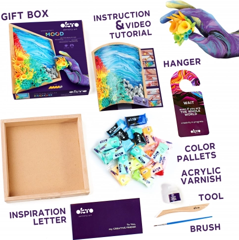 Plongez dans un univers créatif et réalisez votre propre tableau 3D sur le thème de l’Océan paisible. Le set contient tout le nécessaire, du cadre à la pâte de modelage, jusqu’au vernis acrylique, pour commencer dès l’ouverture. Grâce au guide illustré détaillé, vous obtiendrez facilement un résultat impressionnant.