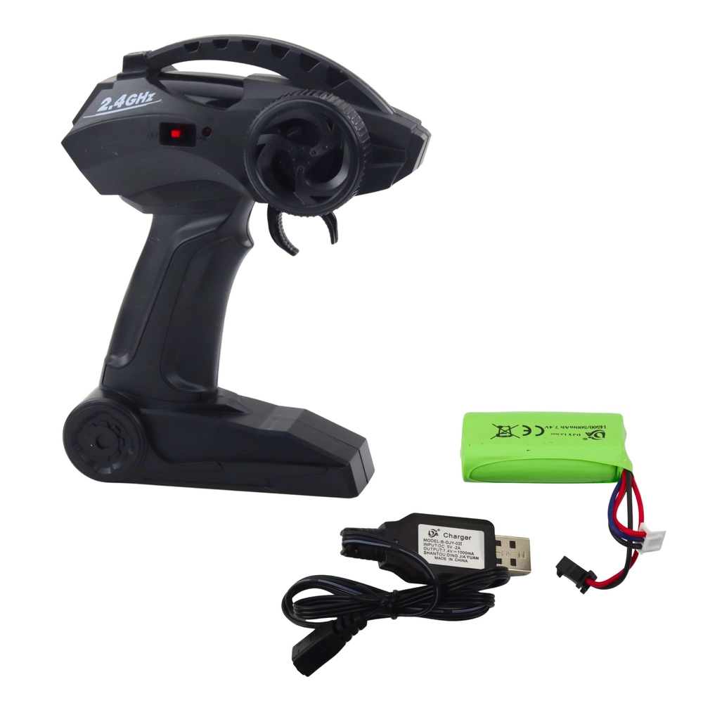 Le système radio moderne 2,4 GHz offre une commande fluide même lorsque plusieurs modèles RC roulent en même temps. La télécommande ergonomique de type pistolet tient bien en main et permet un dosage précis de l’accélération et de la direction.