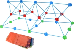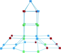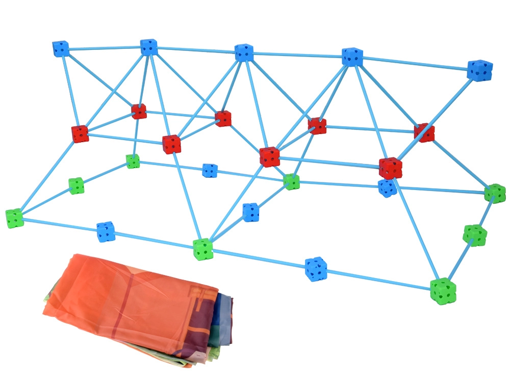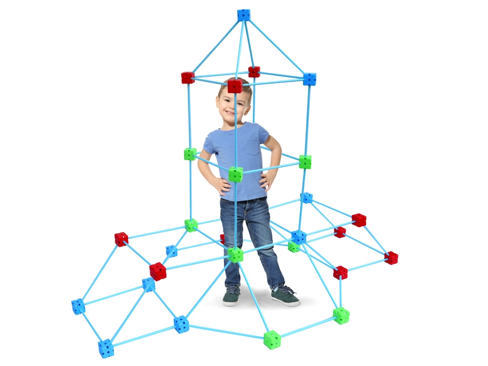 Des blocs colorés avec des ouvertures multi-directionnelles permettent d’assembler les tiges sous différents angles. Vous pouvez ainsi construire facilement des tours, des dômes et de grands forts de jeu.