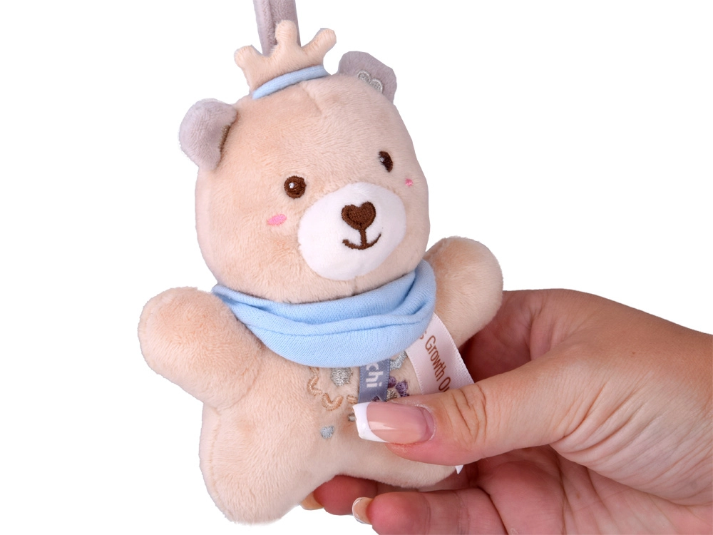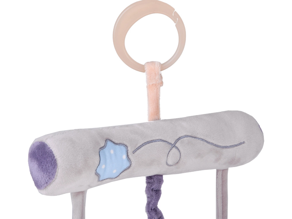 Ce jouet suspendu avec ourson est conçu pour divertir en douceur et stimuler les sens de votre bébé. Les tons pastel apaisent, tandis que les textures et les sons éveillent la curiosité naturelle et soutiennent le développement moteur. Grâce à l’anneau universel, il se fixe facilement au lit, à la poussette ou au siège auto.