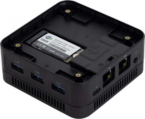 Le mini PC offre de vastes options de connexion : deux ports HDMI et un DisplayPort permettent de brancher aisément plusieurs écrans, tandis que la connexion réseau est possible via deux ports LAN gigabit ou le Wi‑Fi AC double bande. Le SSD M.2 128 Go, rapide et facilement remplaçable, assure une réactivité élevée du système et des applications, tandis que les 3× USB 3.0 offrent suffisamment de ports pour les périphériques. Le paquet comprend également un support VESA pour un montage élégant derrière l’écran ou sous le bureau.