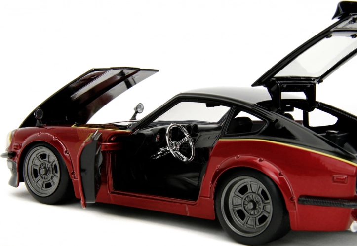Jada Toys Datsun 240Z 1972 1:24 de Fast & Furious X. Modèle en métal avec parties ouvrantes, intérieur détaillé et peinture rouge‑noir. Pour collectionneurs dès 8 ans.