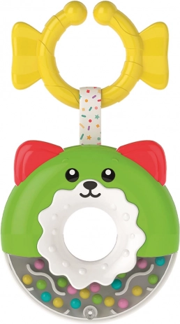 Hochet donut BABY CLEMENTONI pour enfants dès 3 mois. Couleurs vives, textures variées, doux son et anneau de fixation. Matériaux sûrs pour les gencives.