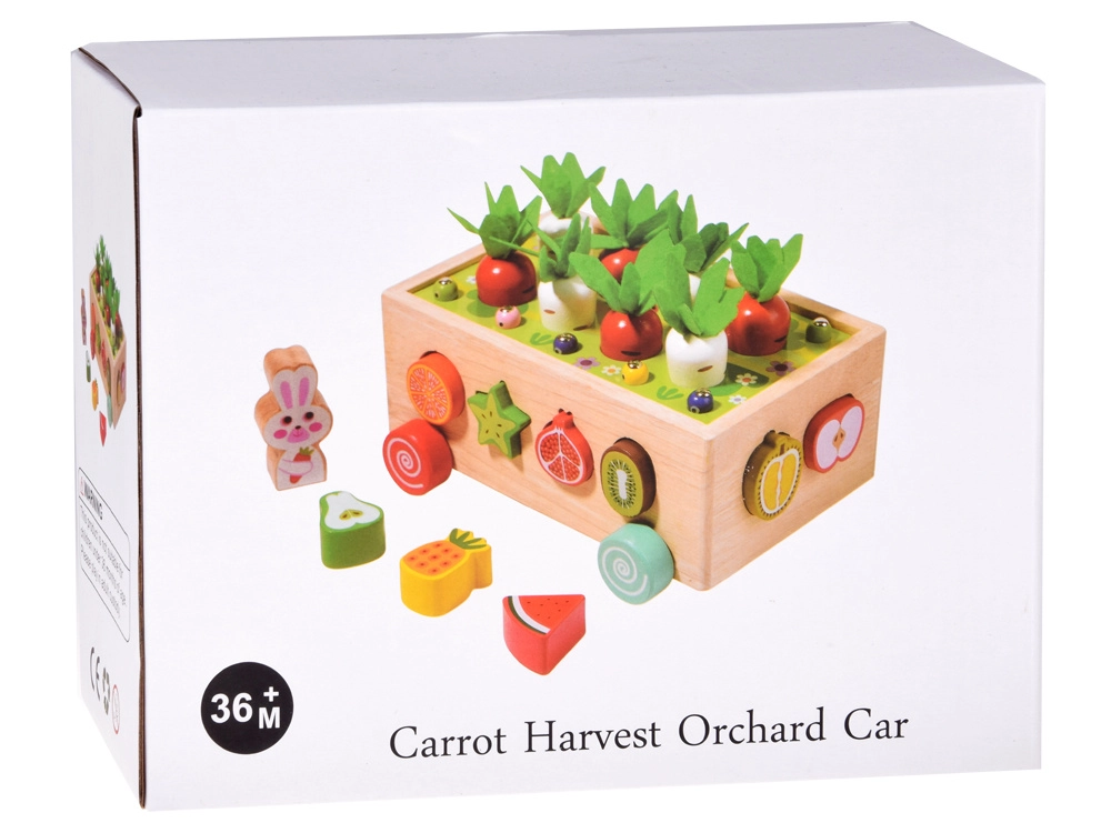 Découvrez un jouet ludique et éducatif pour les tout-petits : un chariot Montessori en bois avec potager, formes et petits vers magnétiques. Les enfants vont arracher des carottes, attraper des vers avec un lapin magnétique et trier des formes de fruits – le tout avec du bois lisse et sécurisé et des peintures non toxiques. Le jeu développe la motricité fine, la coordination œil–main, la reconnaissance des formes et des couleurs ainsi que la stimulation sensorielle.