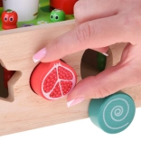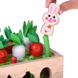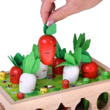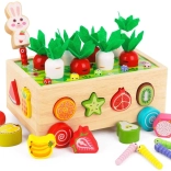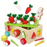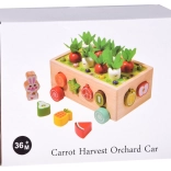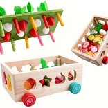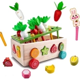 Chariot de jardin Montessori en bois avec récolte de carottes, formes et petits vers magnétiques