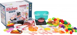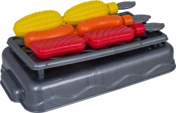 Il comprend une plaque à induction fonctionnant avec 3× AA (non incluses), affichant la température et dotée de commandes tactiles ; un grill, un ensemble de vaisselle (bouilloire jouet, autocuiseur, poêle, casserole), des sets de service (bols, assiettes, couverts, baguettes), des aliments à découper à scratch, une pizza avec roulette, des brochettes et bien plus encore. Le tout est complété par un panier de courses et un plateau de service pour un jeu réaliste.