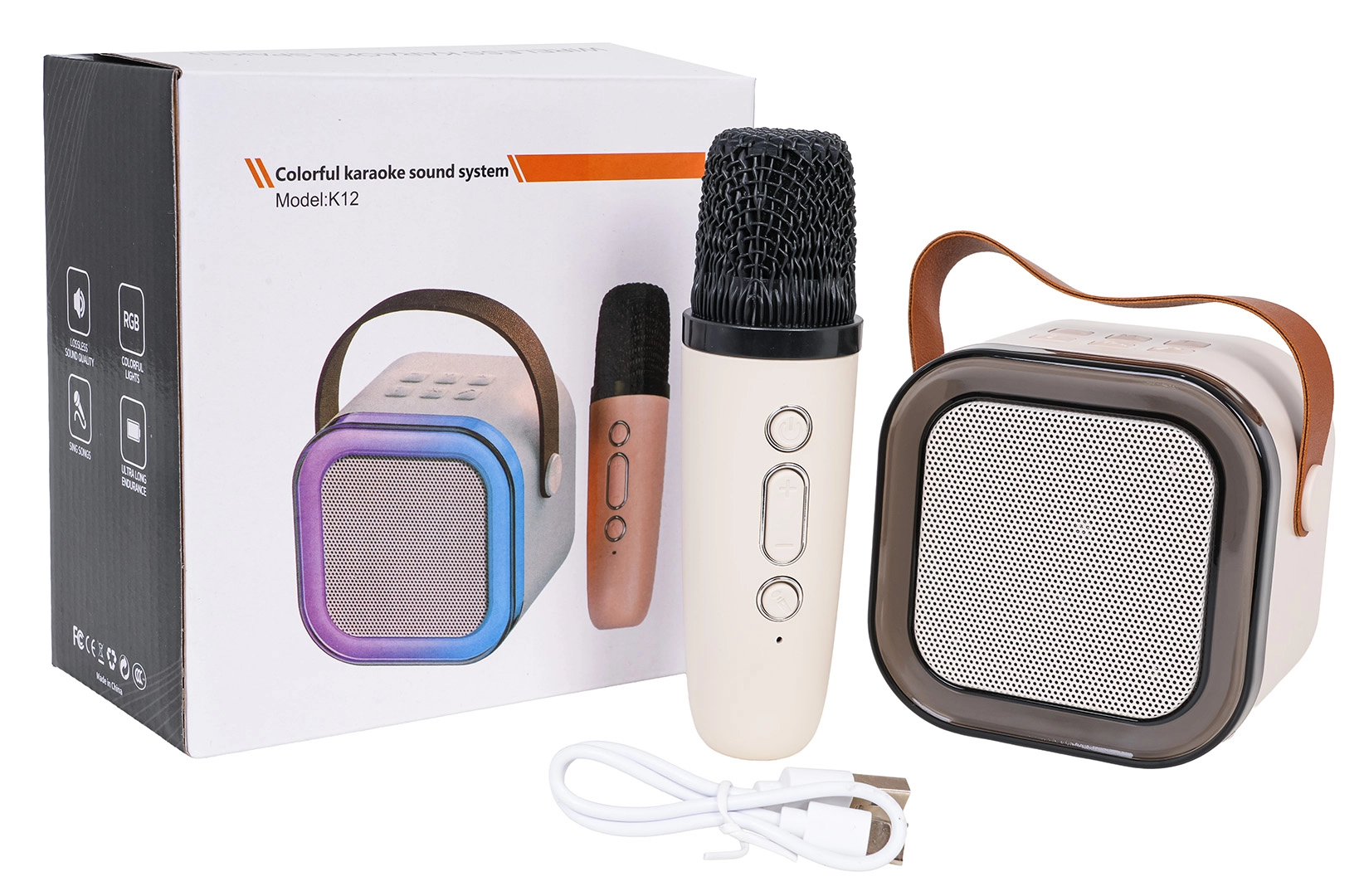 Ensemble karaoké compact pour enfants dès 3 ans et adultes, combinant un microphone sans fil et un mini haut-parleur performant au son clair et puissant, avec éclairage RGB et Bluetooth 5.0 stable. Grâce à la réduction de bruit DSP, à la prise en charge MP3/WMA/WAV et aux entrées dont carte TF et USB‑C, il est idéal pour chanter, faire des annonces et s’amuser en déplacement.