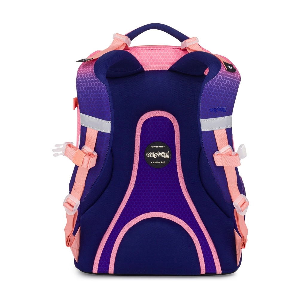 OXY Ombre Apricot est un sac à dos scolaire stylé avec dégradé de couleurs, qui attire le regard au premier coup d’œil tout en répondant aux exigences d’un port sain et sécurisé des fournitures. Le panneau dorsal anatomique, les bretelles d’épaule rembourrées et la sangle de poitrine réglable répartissent la charge et favorisent une bonne posture.