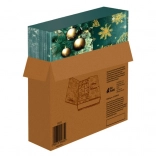 Le carton laminé rigide dans une combinaison vert-or et le ruban en tissu en font un élément décoratif de Noël. Il a fière allure sous le sapin comme sur une commode.