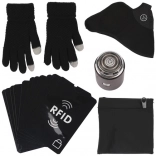 cravate de Noël, chaussettes, bonnet de Père Noël, noeud papillon scintillant, dominos, mètre enrouleur, accessoires de poker, porte‑manteau, porte‑lunettes, gants tactiles, masque d’hiver, ceinture de sport avec poche, porte‑cartes, rasoir, mini‑ventilateur USB‑C, support de téléphone, marteau de sécurité 3‑en‑1, lampe frontale, support de téléphone, cutter à lame rétractable, kit de charge, shooters en inox, kit de fausses moustaches, jauges de profondeur de sculpture des pneus