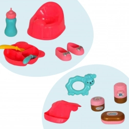 Inclus : tapis de jeu avec arche et jouets suspendus, sacs et accessoires pour nourrir et soigner – idéal pour jouer aux parents.