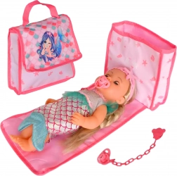 - Poupée sirène, poussette canne, lit de voyage/parc, tapis de jeu avec arche, sacs, pot, accessoires pour nourrir et soigner