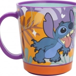 Mug en plastique élégant avec motif STITCH et technologie intelligente SmartGrip pour éviter tout renversement. Le fond antidérapant et anti-bruit adhère fermement aux surfaces lisses, de sorte que le mug ne se renverse pas, tout en pouvant être soulevé facilement à tout moment. Léger, résistant et idéal pour une utilisation quotidienne ou comme cadeau original.