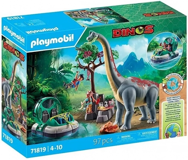 L’aéroglisseur accueille deux figurines PLAYMOBIL et permet des explorations réalistes sur l’eau ainsi que des déplacements rapides à la poursuite des dinosaures.