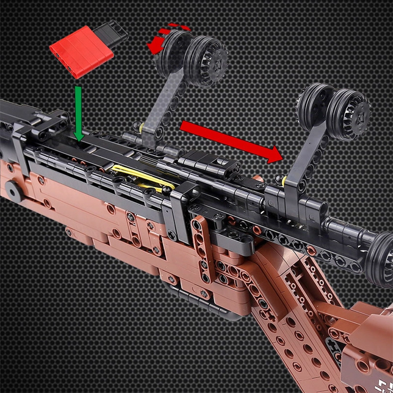 Ce jeu de construction de qualité vous permet d’assembler un fusil long inspiré de l’iconique Mauser 98K. Grâce à une conception ingénieuse faite de pièces en plastique résistantes, vous obtiendrez une pièce de collection impressionnante avec des détails authentiques – de la crosse et du canon jusqu’aux organes de visée. Le modèle s’adresse aux constructeurs plus expérimentés dès 14 ans.