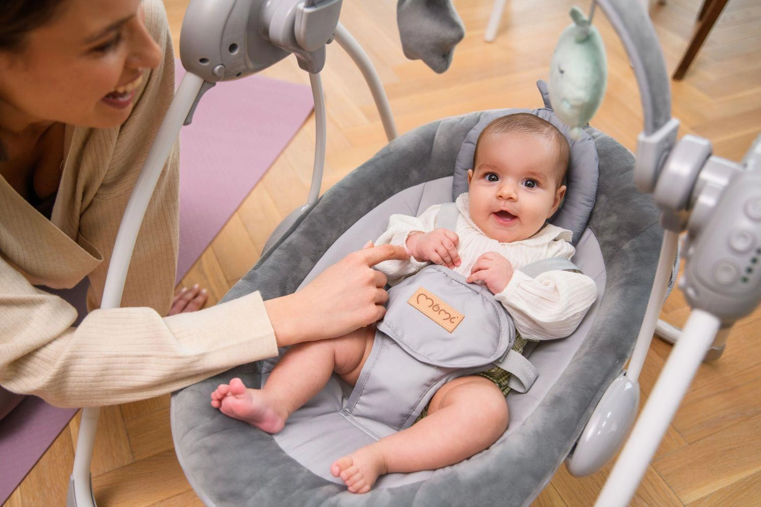 Le transat MoMi Liss est conçu pour un endormissement en douceur et des moments ludiques au quotidien. Grâce au balancement électrique à 5 vitesses, vous adaptez facilement le mouvement à l’âge et à l’humeur de l’enfant. Le minuteur avec options 10/15/30 minutes économise l’énergie et permet l’arrêt automatique, tandis que 6 mélodies offrent un fond sonore agréable.