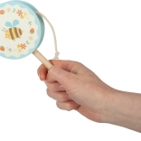 Ce tambour rotatif en bois est un premier instrument de musique idéal pour les petits musiciens. Grâce à ses dimensions compactes, il tient parfaitement dans la main d’un enfant et favorise, pendant le jeu, le développement naturel du sens du rythme et de la coordination œil-main. L’imprimé gai avec abeille et fleurs confère au jouet un look ludique qui motive les enfants à explorer davantage le monde des sons.