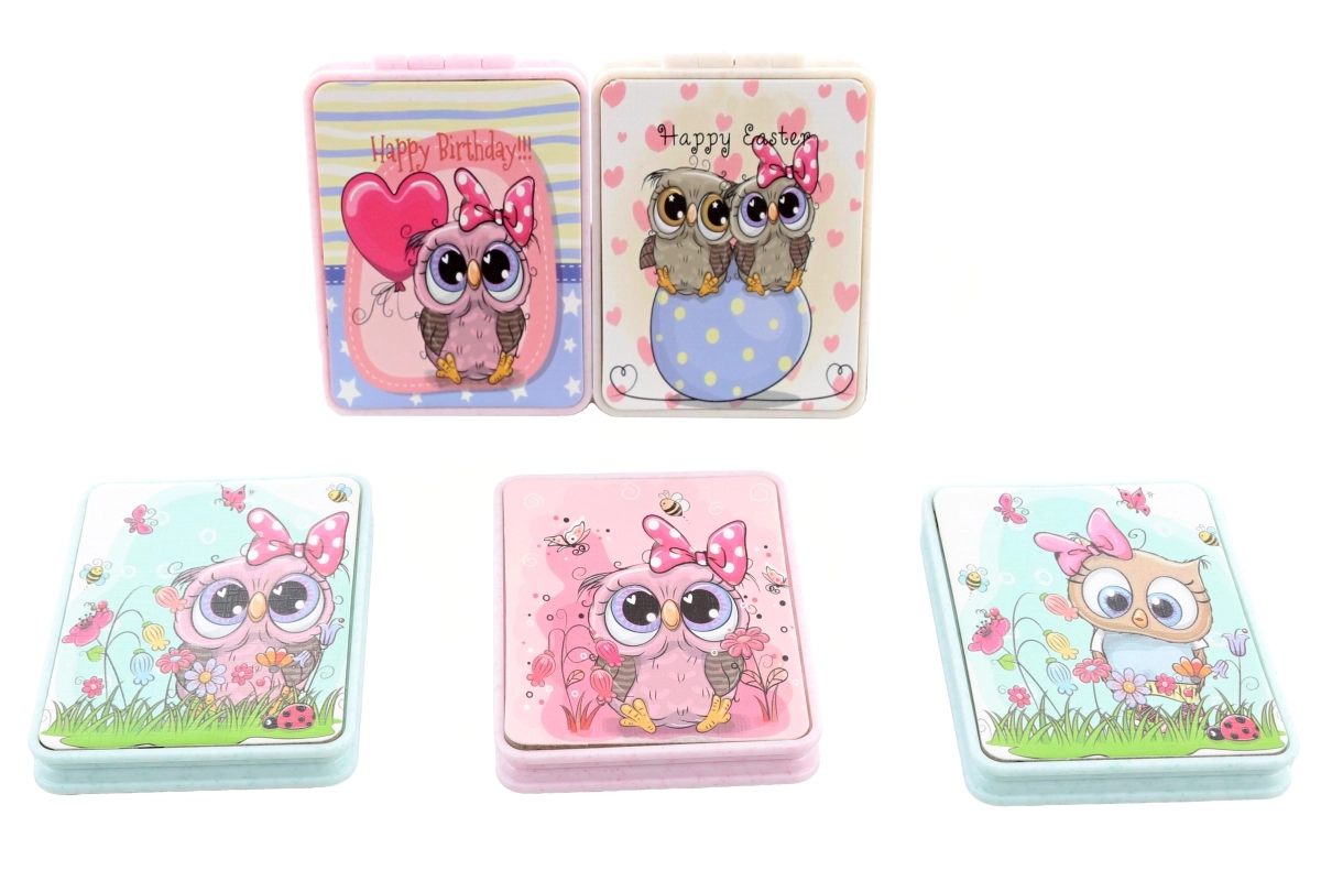 Profitez d’un miroir de poche avec hiboux pratique et stylé, qui tient dans n’importe quel sac à main. Grâce à ses dimensions compactes et à son corps léger en plastique, il est idéal pour les voyages, l’école et le travail. Les différents motifs de hiboux, mignons à souhait, plairont aux enfants comme aux adultes.