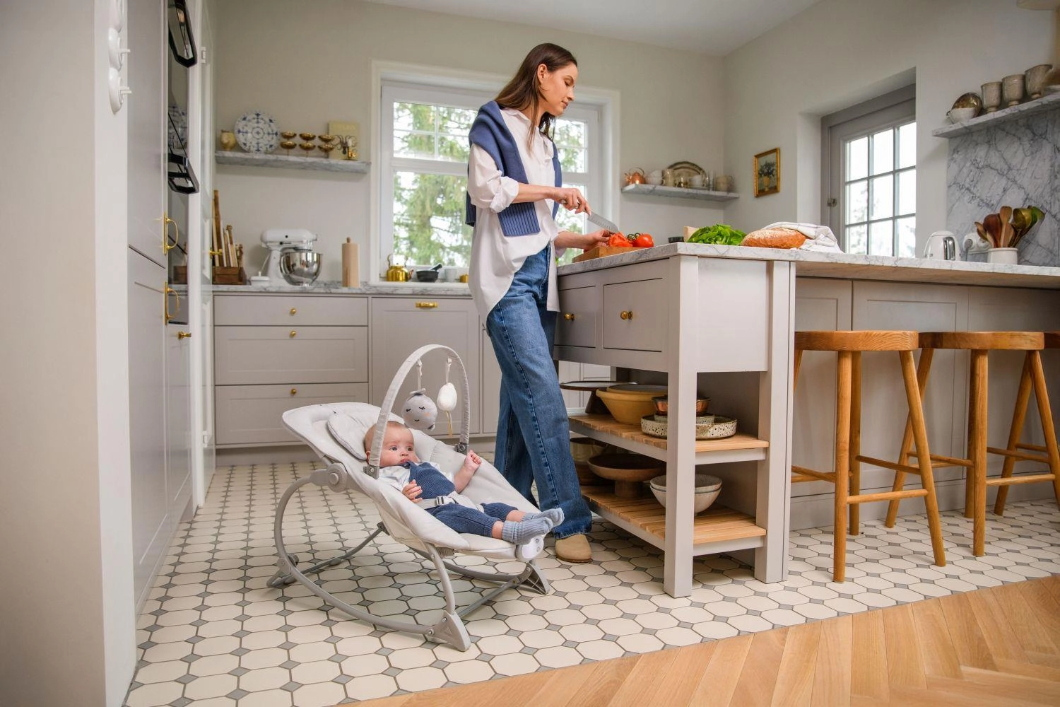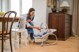 Le transat MoMi LAPIS allie un bercement apaisant à un grand confort d’usage et à la sécurité. Le module sensoriel avec mélodies et vibrations aide à calmer bébé, tandis que l’arche avec deux jouets stimule les sens et favorise le développement de la motricité. Grâce au réglage du dossier en 3 positions, vous adaptez facilement la posture pour la détente ou le repas.