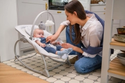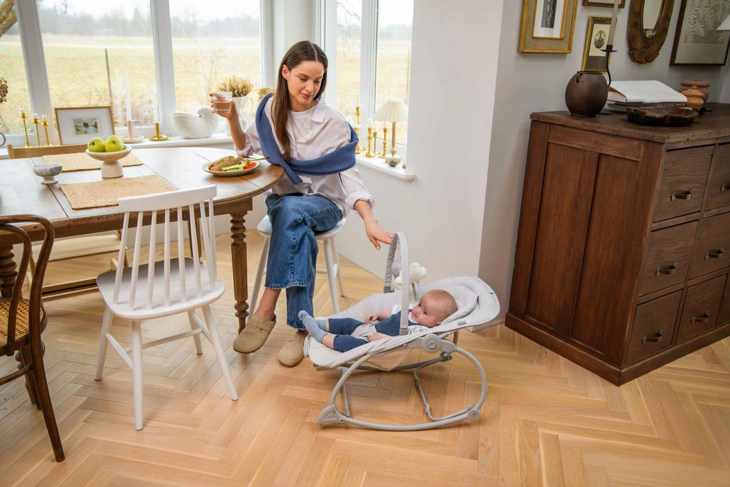 Le harnais de sécurité 3 points, le coussin doux amovible et l’arche avec deux jouets assurent sécurité et stimulation sensorielle.