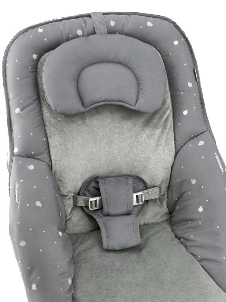 L’équipement pratique comprend un coussin doux amovible, des housses amovibles et lavables et la possibilité de verrouiller la fonction de balancement pour une assise fixe. La structure solide et stable associée au harnais de sécurité 3 points est conforme aux normes EN 12790-2 et EN 71, pour une utilisation en toute confiance.
