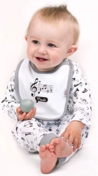 Confortables semi-salopettes pour bébé en 100 % coton avec un motif joyeux de notes et d’instruments de musique. Elles possèdent une large ceinture qui ne comprime pas les ventres sensibles, sont douces pour la peau des enfants et, grâce au pratique bouton-pression entre les jambes, permettent un change facile. Design universel pour filles et garçons.