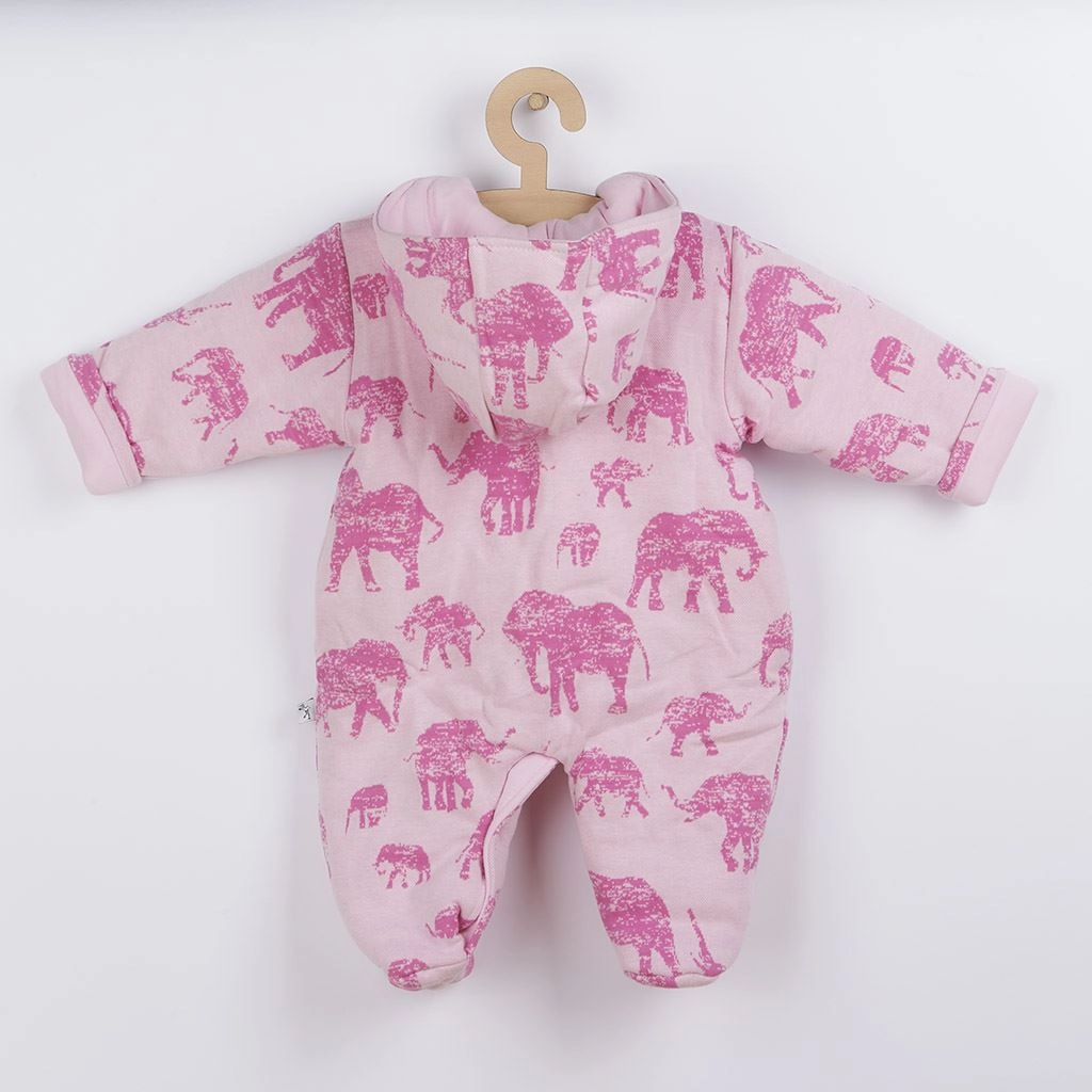 Cette combinaison doublée pour nourrissons est idéale pour les jours plus frais. Le matériau agréable avec doublure en coton assure un contact délicat avec la peau de bébé, tandis que le garnissage antiallergique offre une chaleur fiable sans irritation. L’adorable imprimé éléphants et la couleur rose raviront tous les amateurs de design doux.